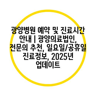 광양병원 예약 및 진료시간 안내 | 광양의료법인, 전문의 추천, 일요일/공휴일 진료정보, 2025년 업데이트