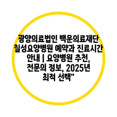 광양의료법인 백운의료재단 칠성요양병원 예약과 진료시간 안내 | 요양병원 추천, 전문의 정보, 2025년 최적 선택”