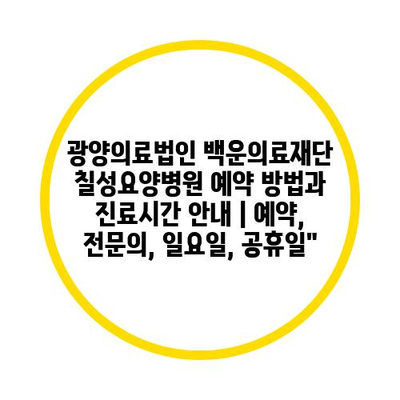 광양의료법인 백운의료재단 칠성요양병원 예약 방법과 진료시간 공지 | 예약, 전연락, 일요일, 공휴일