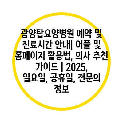 광양탑요양병원 예약 및 진료시간 안내| 어플 및 홈페이지 활용법, 의사 추천 가이드 | 2025, 일요일, 공휴일, 전문의 정보