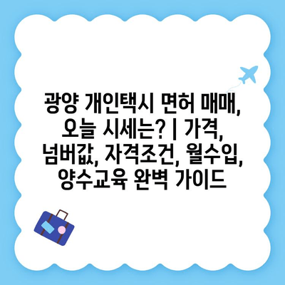 ✅ ## 광양 개인택시 면허 매매, 오늘 시세는? | 가격, 넘버값, 자격조건, 월수입, 양수교육 완벽 가이드