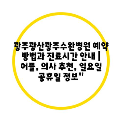 광주광산광주수완병원 예약 방법과 진료시간 안내 | 어플, 의사 추천, 일요일 공휴일 정보”