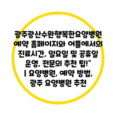 광주광산수완행복한요양병원 예약 홈페이지와 어플에서의 진료시간, 일요일 및 공휴일 운영, 전문의 추천 팁!” | 요양병원, 예약 방법, 광주 요양병원 추천