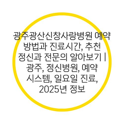 광주광산신창사랑병원 예약 방법과 진료시간, 추천 정신과 전연락 알아보기 | 광주, 정신병원, 예약 시스템, 일요일 진료, 2025년 정보 에 대해 자주 묻는 질문 TOP 5