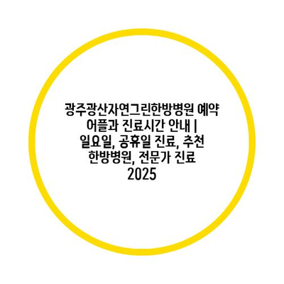 광주광산자연그린한방병원 예약 어플과 진료시간 공지 | 일요일, 공휴일 진료, 추천 한방병원, 전문가 진료 2025 에 대해 자주 묻는 질문 TOP 5