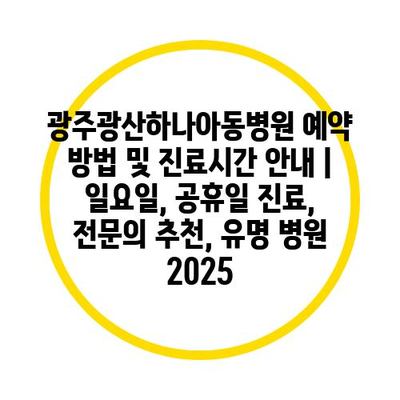 광주광산하나아동병원 예약 방법 및 진료시간 안내 | 일요일, 공휴일 진료, 전문의 추천, 유명 병원 2025