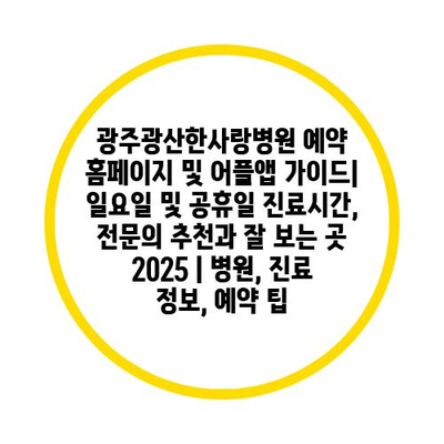 광주광산한사랑병원 예약 홈페이지 및 어플앱 설명서| 일요일 및 공휴일 진료시간, 전연락 추천과 잘 보는 곳 2025 | 병원, 진료 정보, 예약 팁 에 대해 자주 묻는 질문 TOP 5
