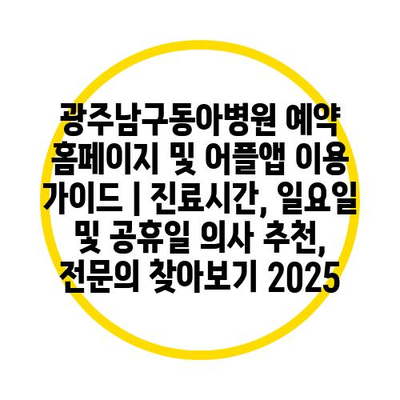 광주남구동아병원 예약 홈페이지 및 어플앱 이용 가이드 | 진료시간, 일요일 및 공휴일 의사 추천, 전문의 찾아보기 2025