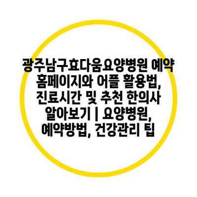 광주남구효다움요양병원 예약 홈페이지와 어플 활용법, 진료시간 및 추천 한의사 알아보기 | 요양병원, 예약방법, 건강관리 팁 에 대해 자주 묻는 질문 TOP 5