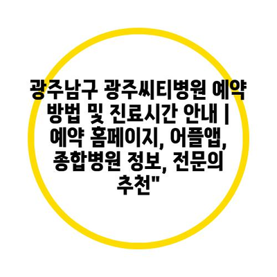 ✅ 광주씨티병원의 예약 방법과 진료시간을 자세히 알아보세요.