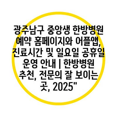 광주남구 중앙생 한방병원 예약 홈페이지와 어플앱, 진료시간 및 일요일 공휴일 운영 공지 | 한방병원 추천, 전연락 잘 보이는 곳, 2025 에 대해 자주 묻는 질문 TOP 5