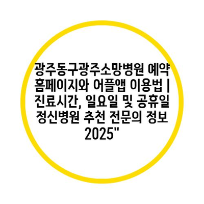 광주동구광주소망병원 예약 홈페이지와 어플앱 이용법 | 진료시간, 일요일 및 공휴일 정신병원 추천 전연락 정보 2025″ 에 대해 자주 묻는 질문 TOP 5