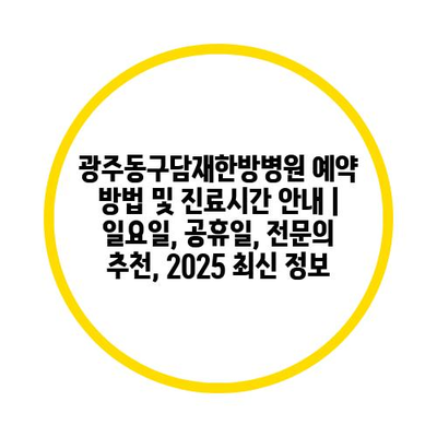 광주동구담재한방병원 예약 방법 및 진료시간 공지 | 일요일, 공휴일, 전연락 추천, 2025 최신 정보 에 대해 자주 묻는 질문 TOP 5