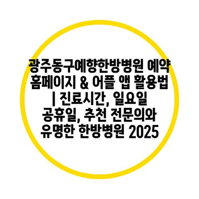 광주동구예향한방병원 예약 홈페이지 & 어플 앱 활용법 | 진료시간, 일요일 공휴일, 추천 전연락와 유명한 한방병원 2025 에 대해 자주 묻는 질문 TOP 5