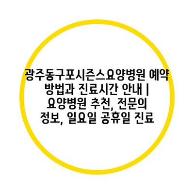 ✅ 광주동구 포시즌스 요양병원의 예약 방법과 진료 시간을 쉽게 알아보세요.
