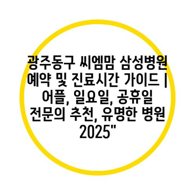 ✅ 광주동구 씨엠맘 삼성병원의 진료시간과 예약 방법을 자세히 알아보세요.