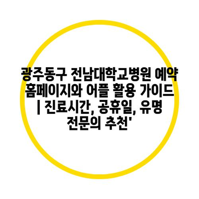 ✅ 광주동구 전남대학교병원 예약 시스템의 특징을 지금 바로 알아보세요.