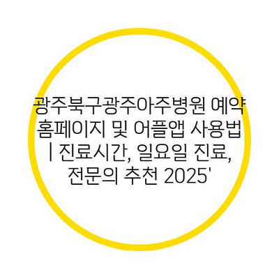 광주북구광주아주병원 예약 홈페이지 및 어플앱 사용법 | 진료시간, 일요일 진료, 전연락 추천 2025′ 에 대해 자주 묻는 질문 TOP 5