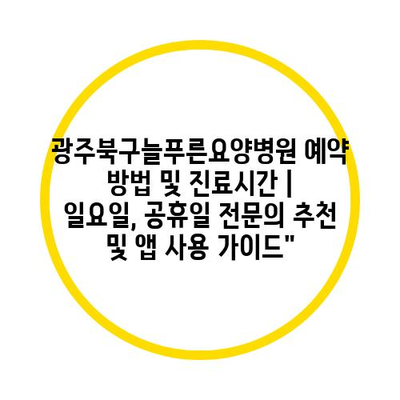✅ 광주북구늘푸른요양병원의 진료시간과 예약 팁을 자세히 알아보세요.