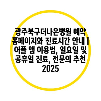 광주북구더나은병원 예약 홈페이지와 진료시간 공지 | 어플 앱 이용법, 일요일 및 공휴일 진료, 전연락 추천 2025에 대해 알아보겠습니다.