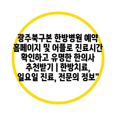 광주북구본 한방병원 예약 홈페이지 및 어플로 진료시간 확인하고 유명한 한의사 추천받기 | 한방치료, 일요일 진료, 전연락 정보