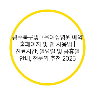광주북구빛고을여성병원 예약 홈페이지 및 앱 사용법 | 진료시간, 일요일 및 공휴일 공지, 전연락 추천 2025