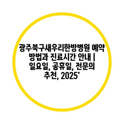 광주북구새우리한방병원 예약 방법과 진료시간 공지 | 일요일, 공휴일, 전연락 추천, 2025′ 에 대해 자주 묻는 질문 TOP 5