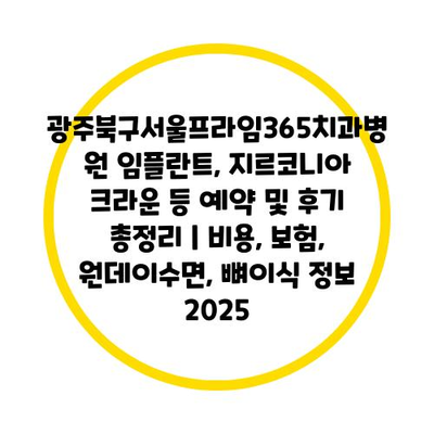 광주북구서울프라임365치과병원 임플란트, 지르코니아 크라운 등 예약 및 후기 총정리 | 비용, 보험, 원데이수면, 뼈이식 정보 2025에 대해 알아보겠습니다.