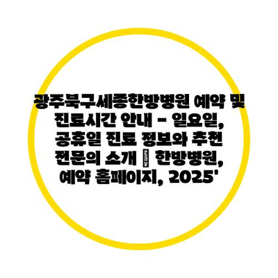광주북구세종한방병원 예약 및 진료시간 공지 – 일요일, 공휴일 진료 정보와 추천 전연락 소개 | 한방병원, 예약 홈페이지, 2025