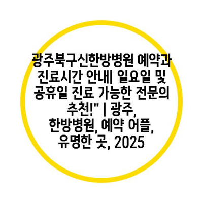 광주북구신한방병원 예약과 진료시간 공지| 일요일 및 공휴일 진료 가능한 전연락 추천!” | 광주, 한방병원, 예약 어플, 유명한 곳, 2025 에 대해 자주 묻는 질문 TOP 5