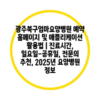 광주북구엄마요양병원 예약 홈페이지 및 애플리케이션 활용법 | 진료시간, 일요일-공휴일, 전문의 추천, 2025년 요양병원 정보
