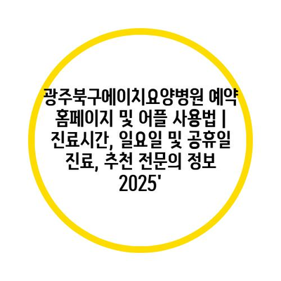 광주북구에이치요양병원 예약 홈페이지 및 어플 사용법 | 진료시간, 일요일 및 공휴일 진료, 추천 전연락 정보 2025에 대해 알아보겠습니다.