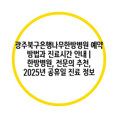 광주북구은행나무한방병원 예약 방법과 진료시간 공지 | 한방병원, 전연락 추천, 2025년 공휴일 진료 정보 에 대해 자주 묻는 질문 TOP 5