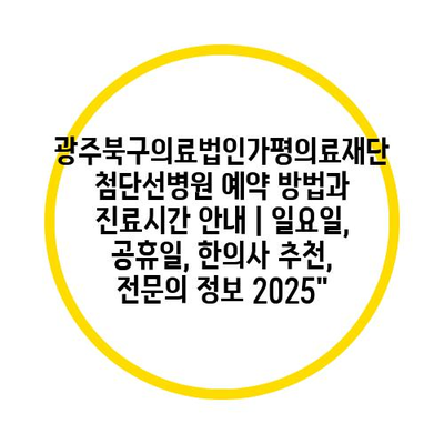 광주북구의료법인가평의료재단 첨단선병원 예약 방법과 진료시간 공지 | 일요일, 공휴일, 한의사 추천, 전연락 정보 2025에 대해 자주 묻는 질문 TOP 5