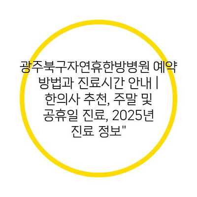광주북구자연휴한방병원 예약 방법과 진료시간 안내 | 한의사 추천, 주말 및 공휴일 진료, 2025년 진료 정보”