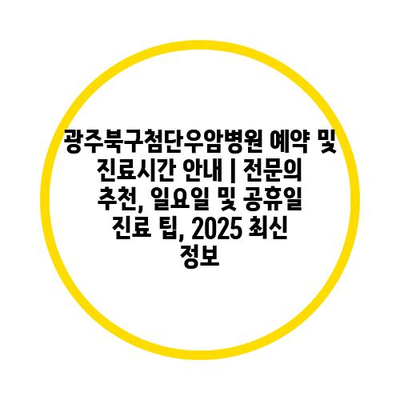 광주북구첨단우암병원 예약 및 진료시간 안내 | 전문의 추천, 일요일 및 공휴일 진료 팁, 2025 최신 정보