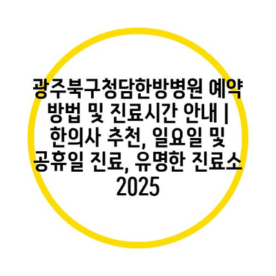 광주북구청담한방병원 예약 방법 및 진료시간 공지 | 한의사 추천, 일요일 및 공휴일 진료, 유명한 진료소 2025