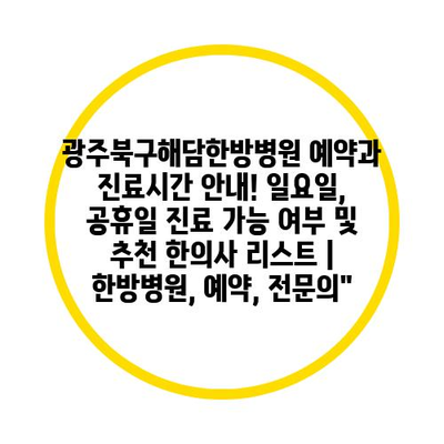 광주북구해담한방병원 예약과 진료시간 공지! 일요일, 공휴일 진료 가능 여부 및 추천 한의사 리스트 | 한방병원, 예약, 전연락” 에 대해 자주 묻는 질문 TOP 5