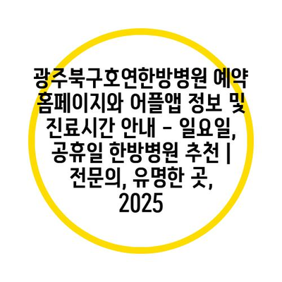 광주북구호연한방병원 예약 홈페이지와 어플앱 정보 및 진료시간 안내 – 일요일, 공휴일 한방병원 추천 | 전문의, 유명한 곳, 2025