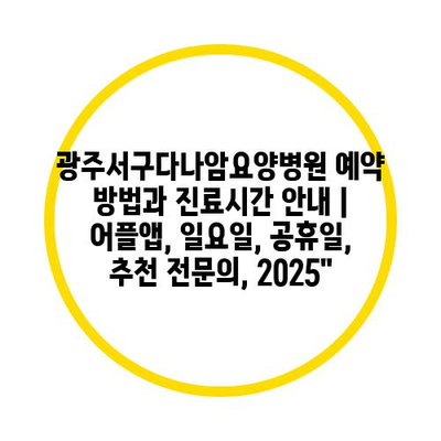 광주서구다나암요양병원 예약 방법과 진료시간 공지 | 어플앱, 일요일, 공휴일, 추천 전연락, 2025″ 에 대해 자주 묻는 질문 TOP 5