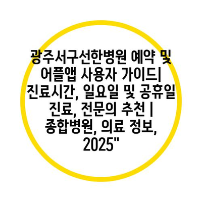 광주서구선한병원 예약 및 어플앱 사용자 설명서| 진료시간, 일요일 및 공휴일 진료, 전연락 추천 | 종합병원, 의료 정보, 2025″ 에 대해 자주 묻는 질문 TOP 5