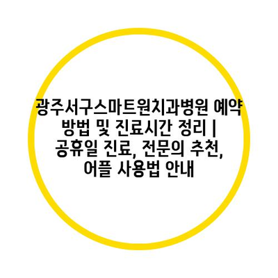 광주서구스마트원치과병원 예약 방법 및 진료시간 정리 | 공휴일 진료, 전문의 추천, 어플 사용법 안내