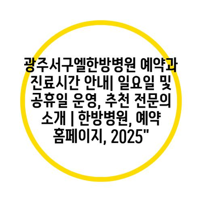 광주서구엘한방병원 예약과 진료시간 공지| 일요일 및 공휴일 운영, 추천 전연락 소개 | 한방병원, 예약 홈페이지, 2025″ 에 대해 자주 묻는 질문 TOP 5