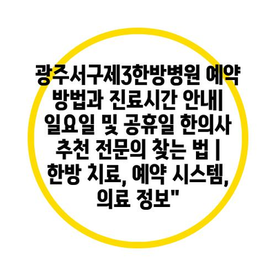 광주서구제3한방병원 예약 방법과 진료시간 공지| 일요일 및 공휴일 한의사 추천 전연락 찾는 법 | 한방 치료, 예약 시스템, 의료 정보” 에 대해 자주 묻는 질문 TOP 5