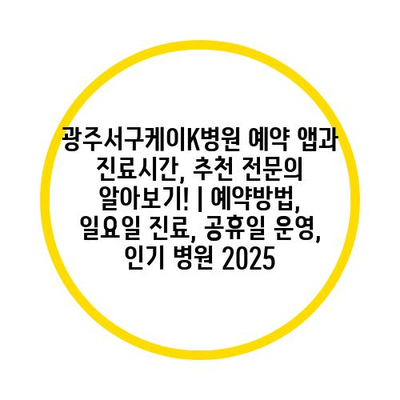 광주서구케이K병원 예약 앱과 진료시간, 추천 전연락 알아보기! | 예약방법, 일요일 진료, 공휴일 운영, 인기 병원 2025에 대해 알아보겠습니다.
