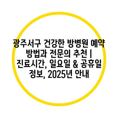 광주서구 건강한 방병원 예약 방법과 전문의 추천 | 진료시간, 일요일 & 공휴일 정보, 2025년 안내