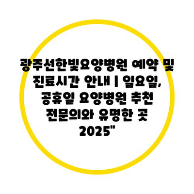 광주선한빛요양병원 예약 및 진료시간 공지 | 일요일, 공휴일 요양병원 추천 전연락와 유명한 곳 2025″ 에 대해 자주 묻는 질문 TOP 5