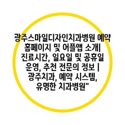 광주스마일디자인치과병원 예약 홈페이지 및 어플앱 소개| 진료시간, 일요일 및 공휴일 운영, 추천 전연락 정보 | 광주치과, 예약 시스템, 유명한 치과병원에 대해 자주 묻는 질문 TOP 5