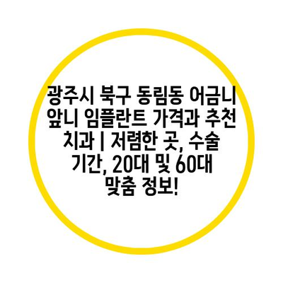 광주시 북구 동림동 어금니 앞니 임플란트 가격과 추천 치과 | 저렴한 곳, 수술 기간, 20대 및 60대 맞춤 정보!