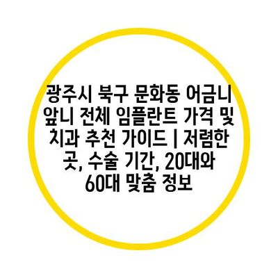 광주시 북구 문화동 어금니 앞니 전체 임플란트 가격 및 치과 추천 가이드 | 저렴한 곳, 수술 기간, 20대와 60대 맞춤 정보